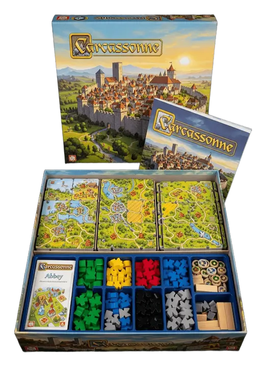 - Carcassonne — klasyczna gra, najłatwiejsza do nauczenia i najszybsza w rozgrywce.