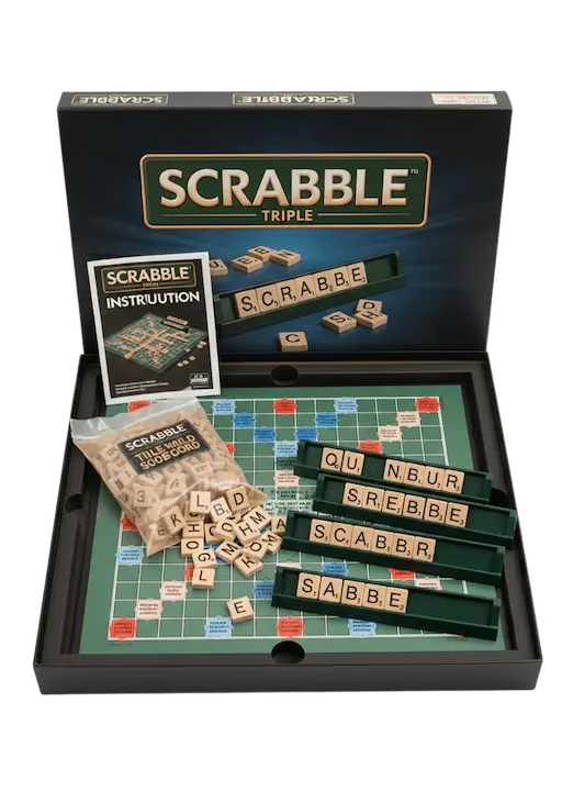 Scrabble to gra słowna, która łączy słownictwo ze strategią. Punktacja zależy od wartości liter i pól premiowych. Duże znaczenie ma zarządzanie zestawem liter i kontrola planszy. Gra jest bardzo popularna na całym świecie i można w nią grać wielokrotnie.